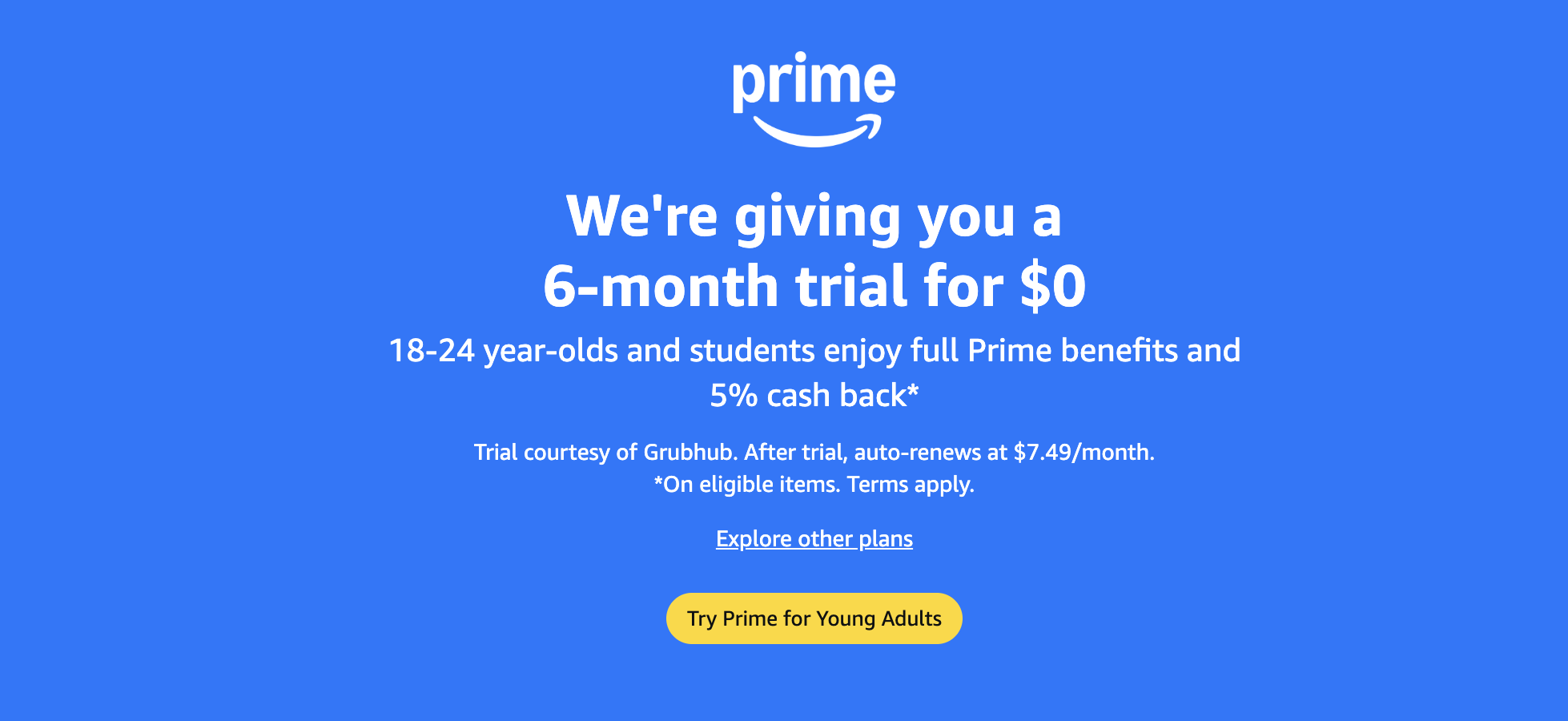Amazon Prime Young Adults 青年 6個月免費試用連結